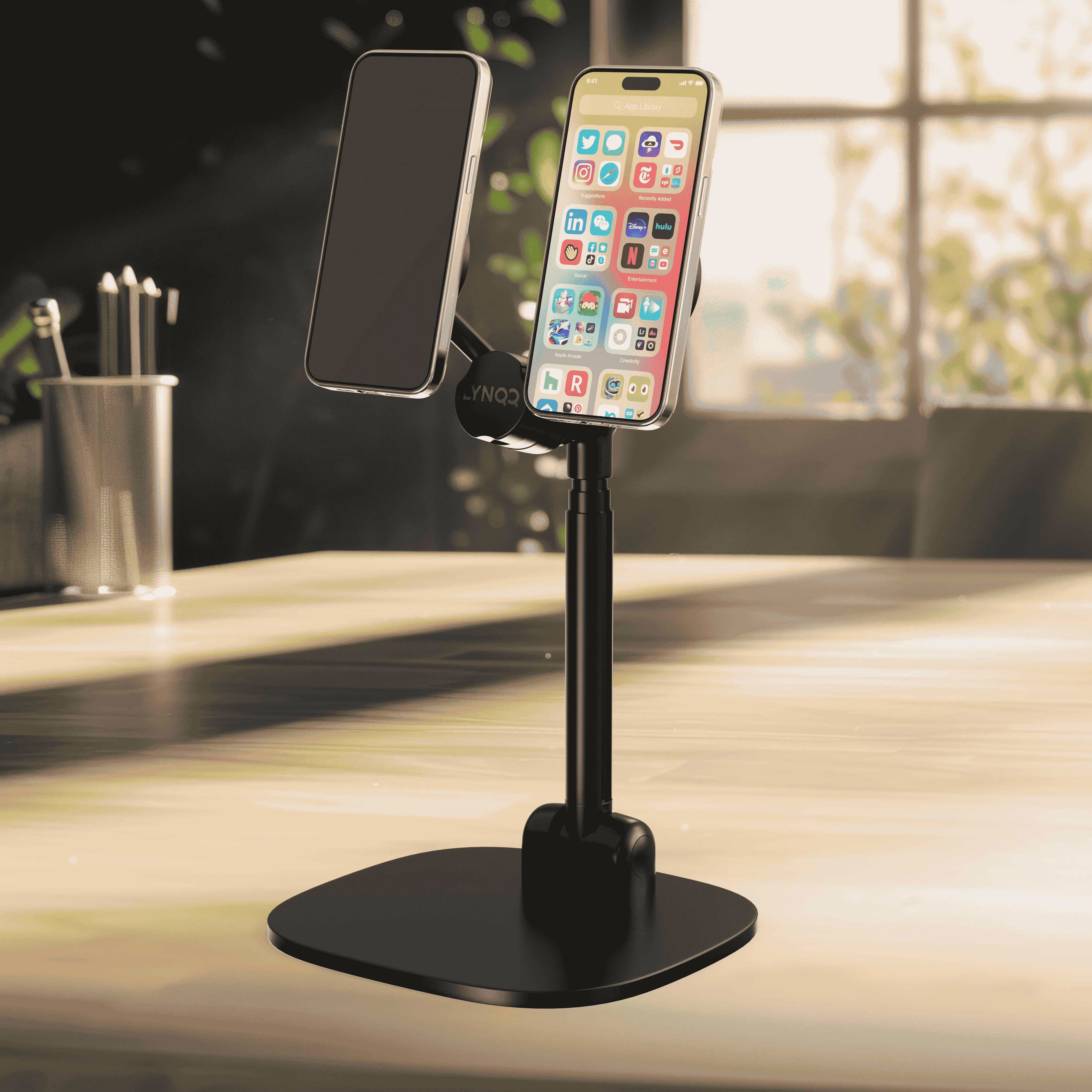 Easily manage both work and personal devices with the LYNQQ™ dual smartphone mount. No more juggling phones during a busy day—LYNQQ™ ensures both devices are accessible and organized.