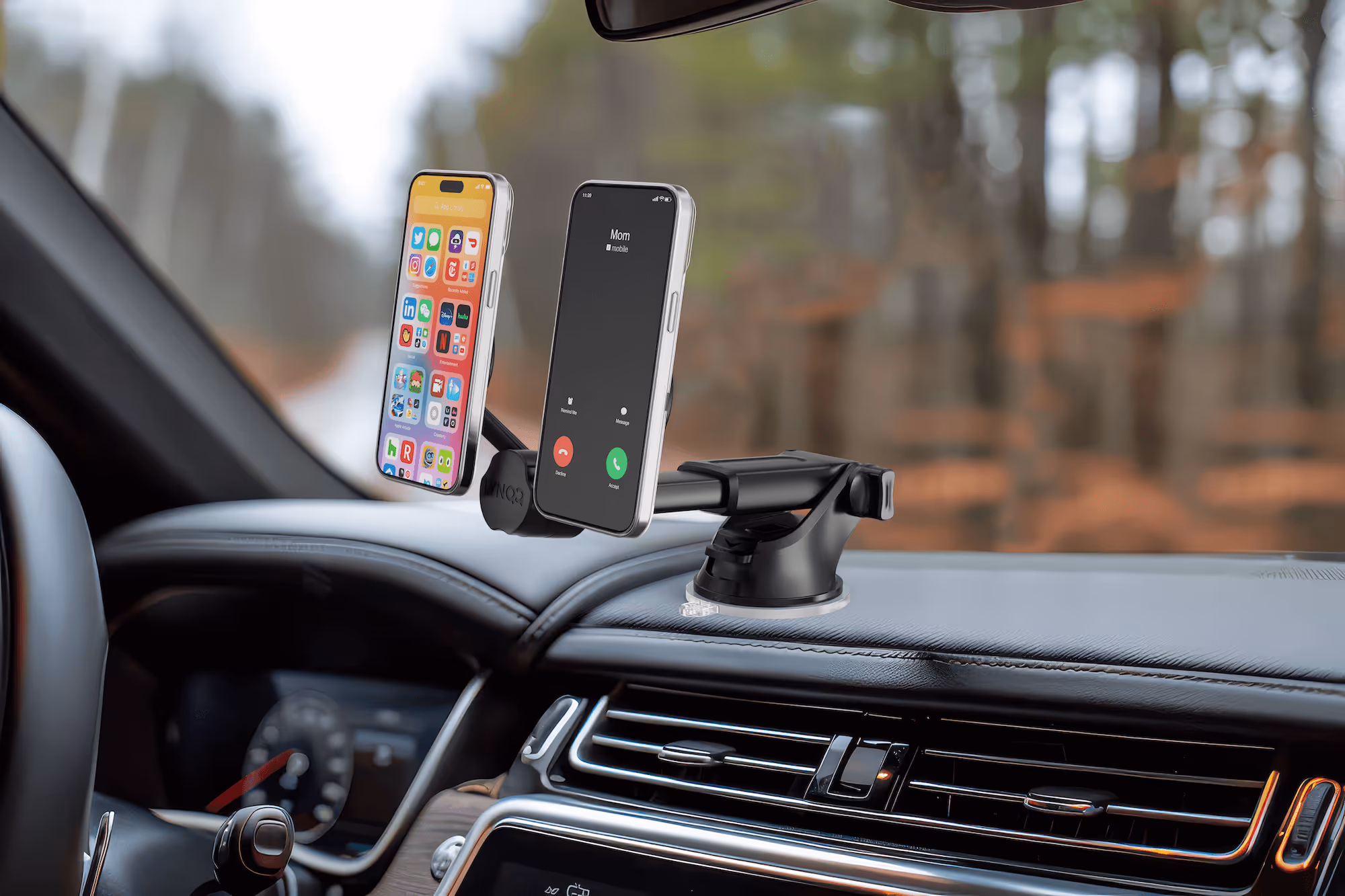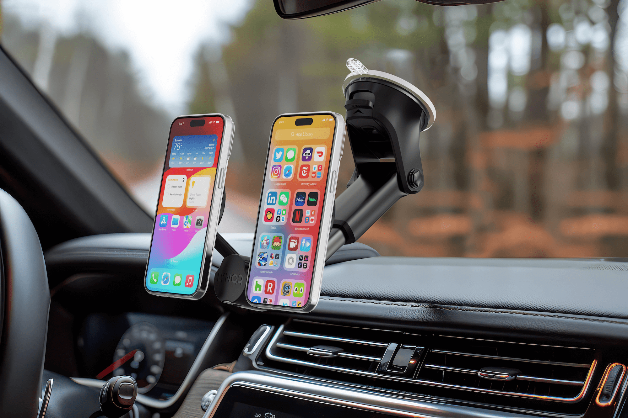 Stay ahead of the competition with LYNQQ™'s dual smartphone mount. For sales professionals constantly on the move, managing calls, CRM apps, and navigation is now easier than ever.