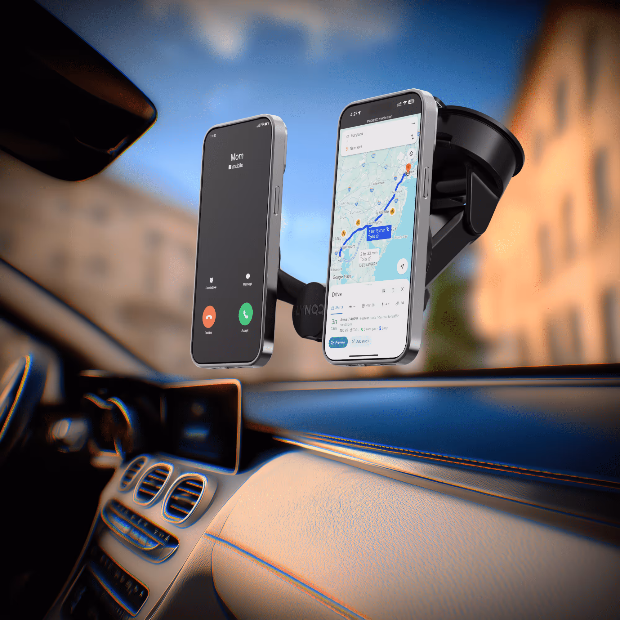Stay safe and productive on the road. The LYNQQ™ Car Mount adapts instantly from holding one phone to two, keeping navigation, calls, and apps in clear view.